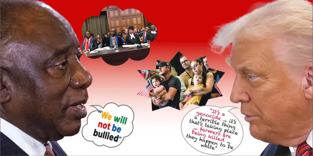 He was referring to Trump’s press conference on 12 May, when he announced Ramaphosa’s visit while he was justifying granting asylum to 59 white Afrikaners because a “genocide” was taking place against them in South Africa and also because, he claimed, their land was being seized.